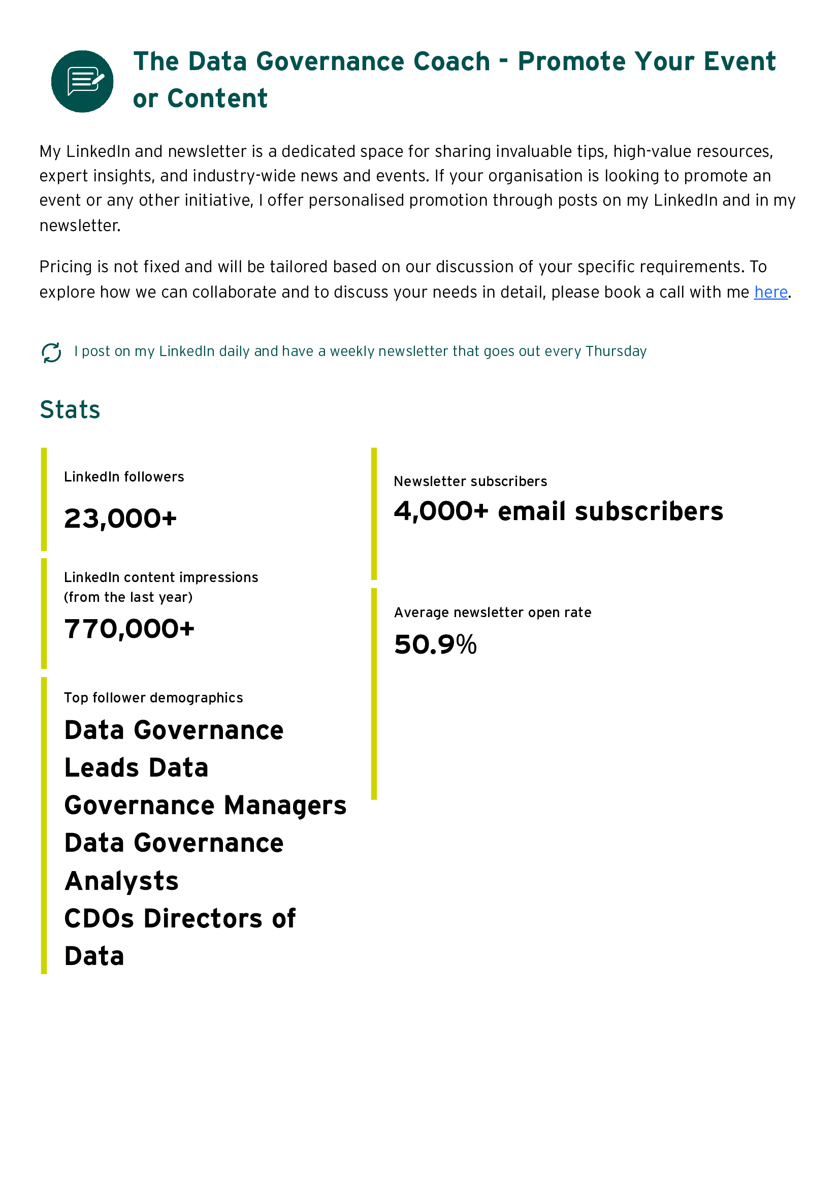 • Data Governance Launch Pad Data Governance Coaching Data Governance Consulting Data Governance Problem Solver Call Data Governance Support Speaking
